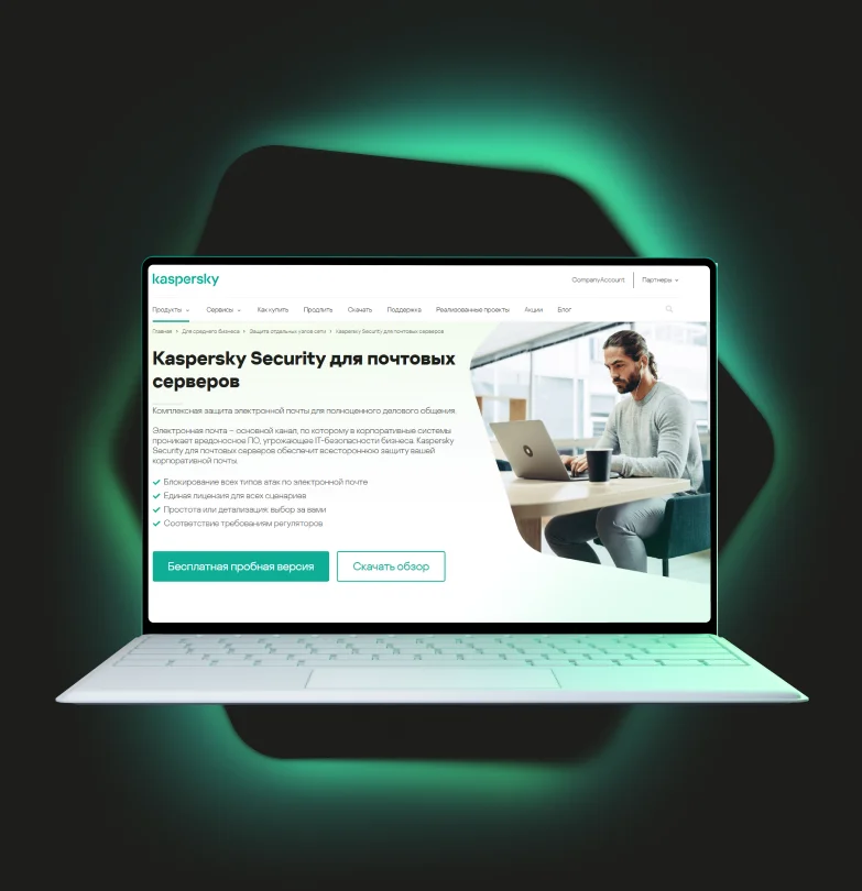 Kaspersky Security для почтовых серверов комплексно защищает от угроз, связанных с электронной почтой. Решение постоянно развивается и дополняется новыми технологиями, которые предназначены для передовой защиты в условиях постоянно меняющегося ландшафта кибератак.