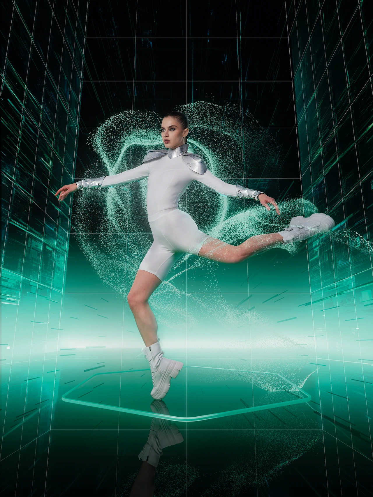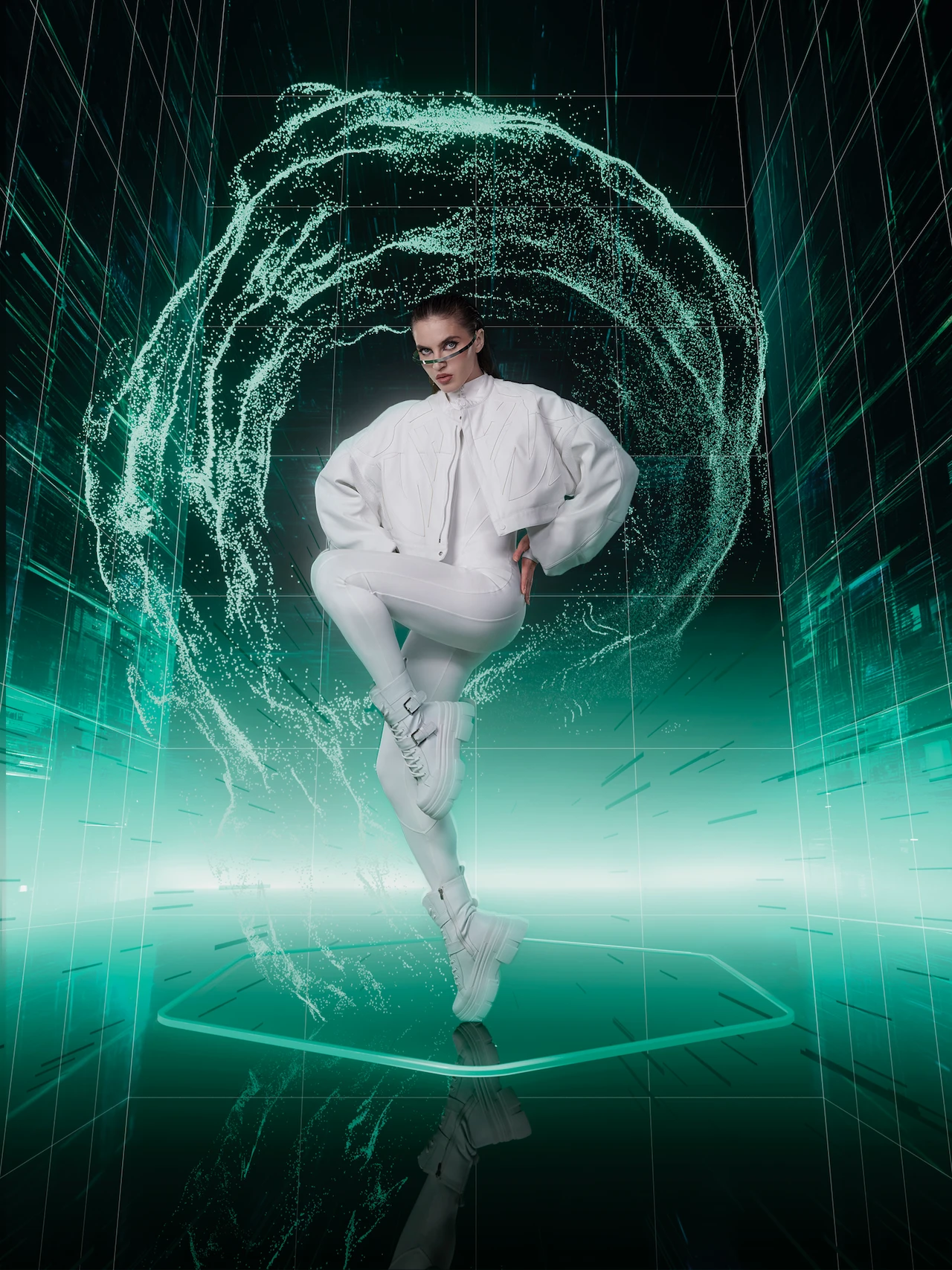 The idea was to dynamically depict the unbreakable link between the physical and digital worlds: the beauty of this synergy coupled with the dangers that lurk beneath. In the photo shoot, Maria Vinogradova demonstrated the evolution of cybersecurity in three striking images.